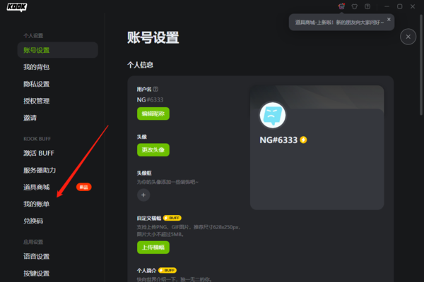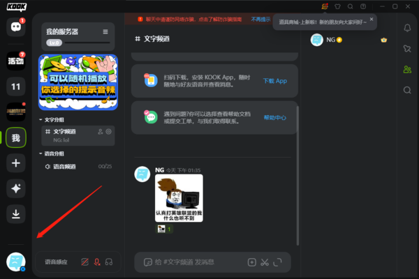 1、进入KOOK主界面,点击左下角的【头像】,进入账户设置界面;
