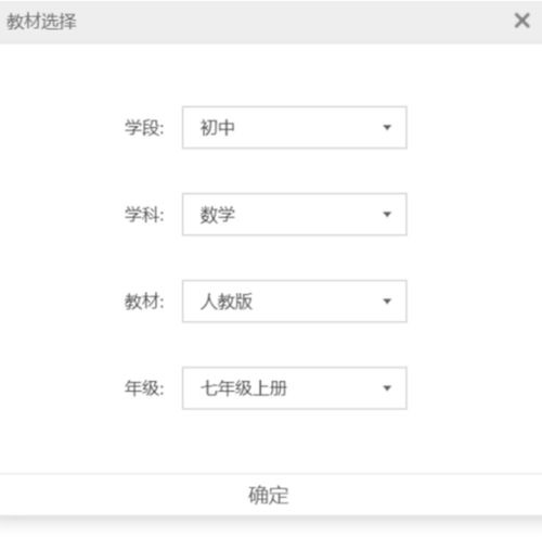4、这样就可以选择你所教的学段、学科以及教材版本和年级了,全部选择无误后,点击确定。