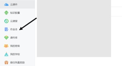 2、在主页面左侧有一列功能,选择第四个“作业本”的选项。