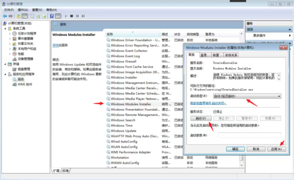 4、还有一步不要忘记,就是把?Windows?Modules?Installer?服务也按照同样的步骤启动。
