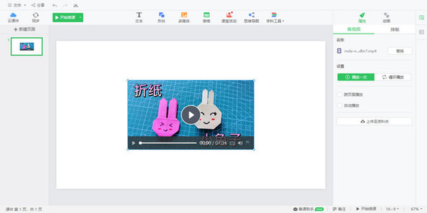 六、然后点击页面右下角的“插入”按钮,如下图所示,视频文件就被放置到多媒体课件里了。