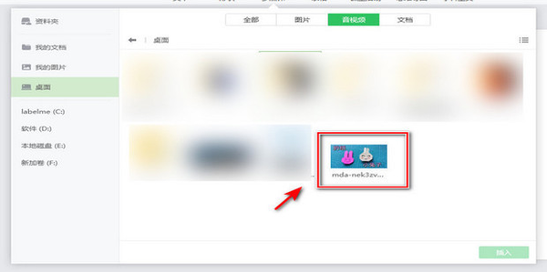 五、此时会出现一个文件夹选择的页面,我们找到外部的视频文件。