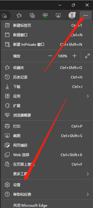 1、打开Microsoft?Edge浏览器,点击右上角【。。。】按钮,在下拉列表选项中选择【设置】;