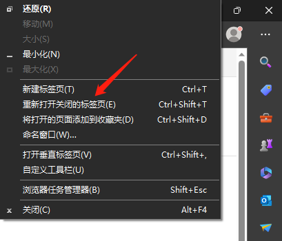 如果大家误关的标签页为刚刚关闭的最后一个标签页,那么大家可以直接将鼠标悬停在主界面标签页的空白处,然后单击右键,找到【重新打开关闭的标签页】,或者按下快捷键【ctrl+shift+T】来将其打开。
