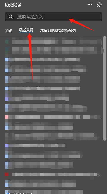 2、在这里。可以看到我们目前访问的历史记录,当然只显示未被清除的,我们若想找刚刚误关的网页,可以在【最近关闭】中查找,或者直接在上方【搜索】关键词来定位。