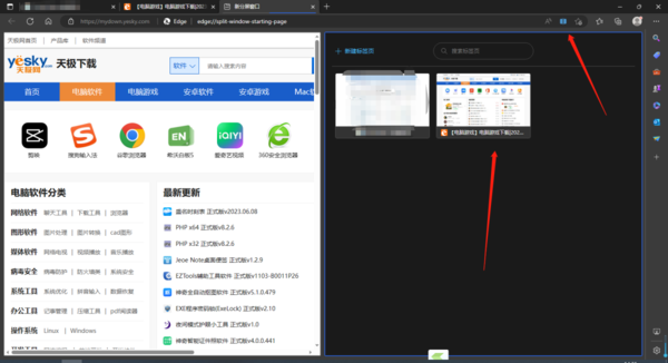 经过小编对比测试后发现,【Microsoft?Edge】浏览器可以做到拆分屏幕,将不同的标签页拆分显示。