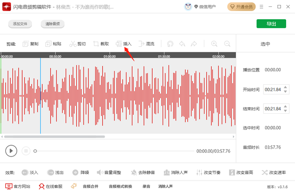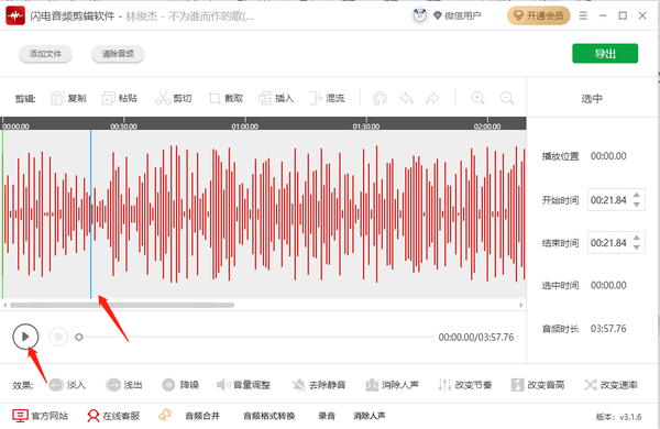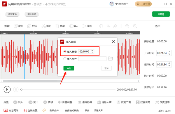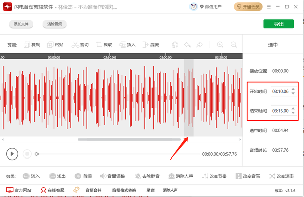 闪电音频剪辑软件怎么手动输入选择音频时间段