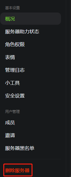 2、进入设置界面后,位于左侧最下方,即可看到【删除服务器】选项;