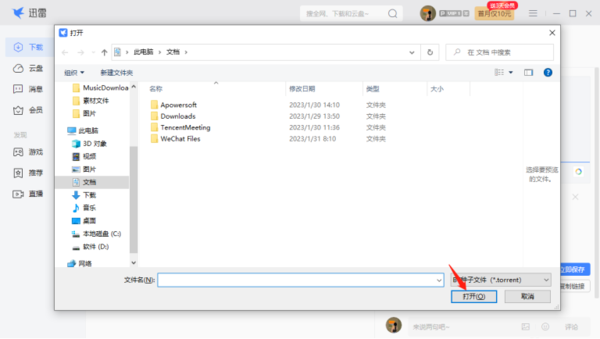 3,进入到“添加文件”的浏览页面,找到之前的BT文件,选中以后,点击右下角的打开,这时就会添加到迅雷中,迅雷会自动识别。