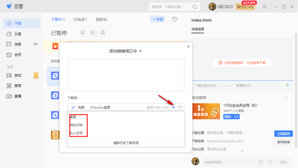 遇到这种情况我们先要确认迅雷的下载资源以及浏览器是否存在网络断开的情况。