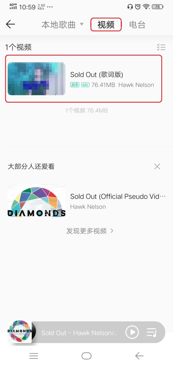 第六步,最后我们在QQ音乐的下载【本地】的【视频】选项中,便可以查看到下载下来的歌曲的MV了。