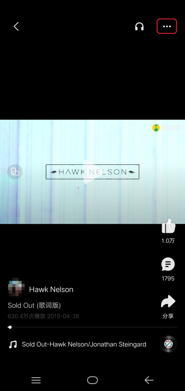 第三步,接着软件就会开始播放歌曲的MV了,此时我们找到界面右上角的【…】三个点图标,并点击它。
