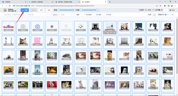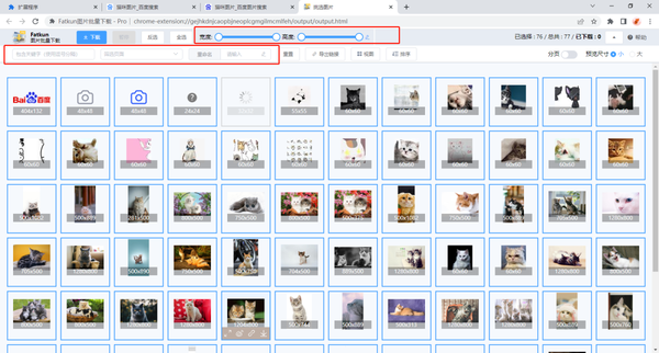 4、接着Fatkun就会把网页中所有的图片自动筛选出来,可以再次设置图片过滤条件;也可以手动筛选,点击图片,变成叉号后就不会下载,再次点击就恢复下载;同时也可以对图片进行重设命名规则。