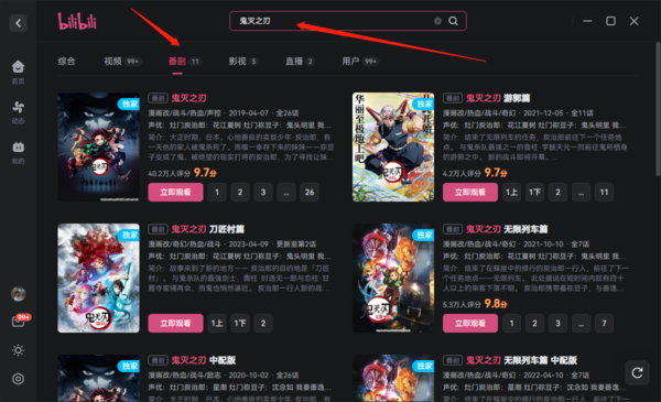 且在哔哩哔哩中还可以看原版的漫画,哔哩哔哩非常为日漫爱好者着想,购买了各大知名番剧的正版版权,我们搜索【鬼灭之刃】,定位【番剧】即可在线看动漫,定位【哔哩哔哩漫画】也可以在线阅读。
