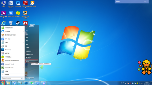 第一步,在电脑桌面左下角找到【开始菜单】按钮,然后点击它,接着在弹出的选项当中,找到【运行】功能,并点击打开。