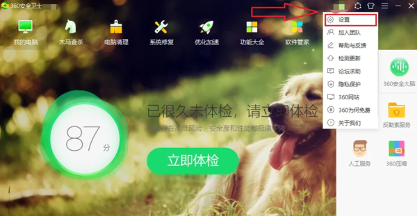 1、打开360安全卫士,点击右上角的【头像】处,点击【设置】;