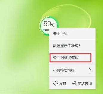 2、开启加速球后,右键单击加速球,即可看到【返回旧版加速球】的选项;