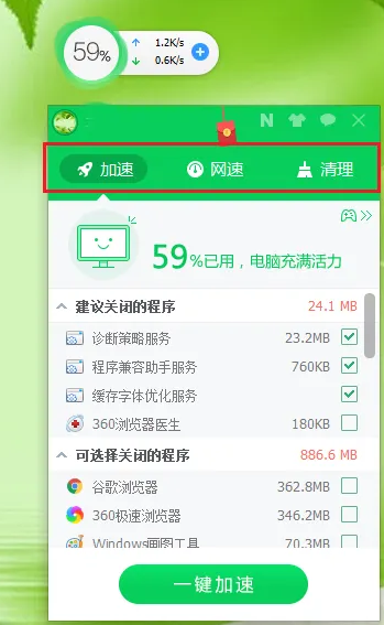 360加速球是我们上网的一款好帮手,它可以检测当前网络状况,还可以一键开启游戏模式、护眼模式、测网速、清理垃圾等等,最近小伙伴们有没有发现,自己的加速球好像变了,原来很多功能都消失了,只能显示网络状况,也不能手动选择要关闭的程序进程了,这是为什么呢,下面一起来看看吧。