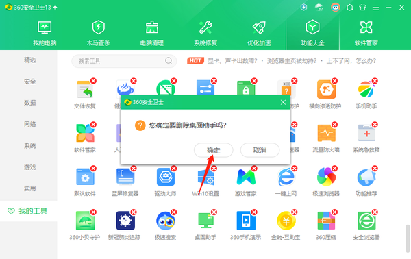 3、点击对话框中的【确定】,待删除完成,桌面助手就从我们的电脑中删除了。