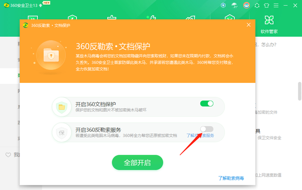 360安全卫士怎么开启反勒索服务