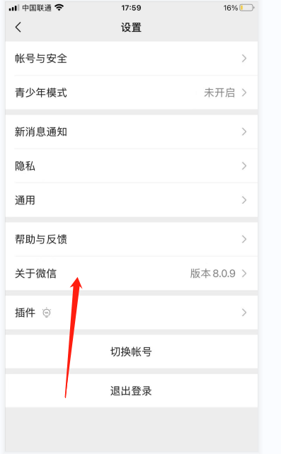 3.?然后找到关于微信并点击它。