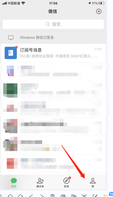 1.?进入到微信主界面后,点击下方有一个我。
