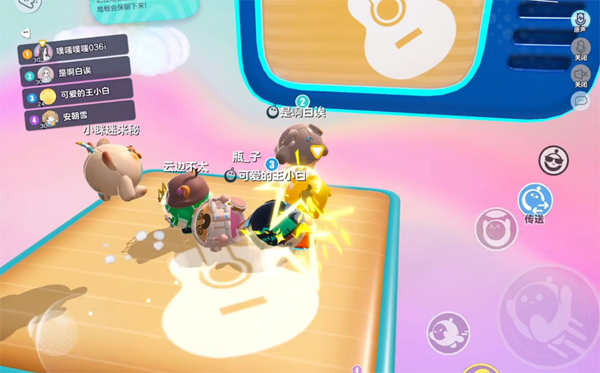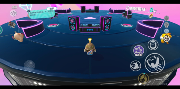 蛋仔派对跃动舞池通关攻略:整一张地图是从里到外的圆环组成,除中间小圈区域是固定的,外周大圈均会在到了一定时限之后掉落,以此随着时间一圈圈缩小生存范围。