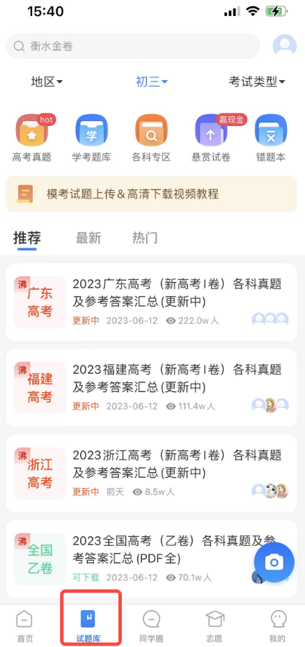 高考直通车是一款专业好用的高考志愿服务软件。高考直通车用户可以根据自己的需求来直接搜索自己想要的内容。用户可以在这里看到各个学校的历年分数线,可以帮助用户更好的预估自己的报考几率,关于高考方面的资讯和信息,都能够及时查看。今天小编为大家带来《高考直通车》如何下载试卷教程。