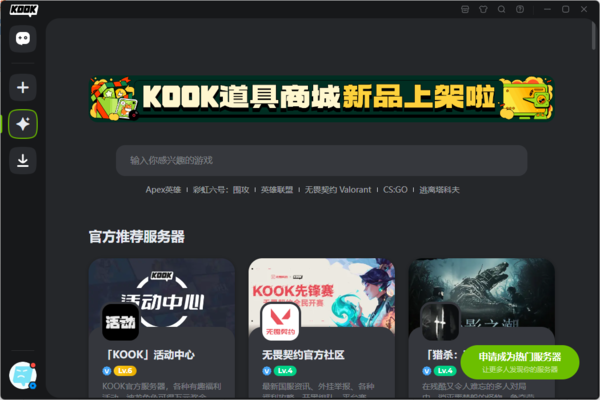 此外,在kook中,我们还能寻找热门服务器,从而去和其他共同爱好某款游戏的玩家,一同交流、开黑。