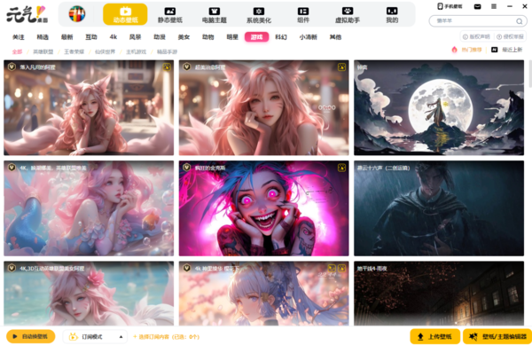 经小编亲自测试,发现【元气桌面】中是拥有动态游戏壁纸的。