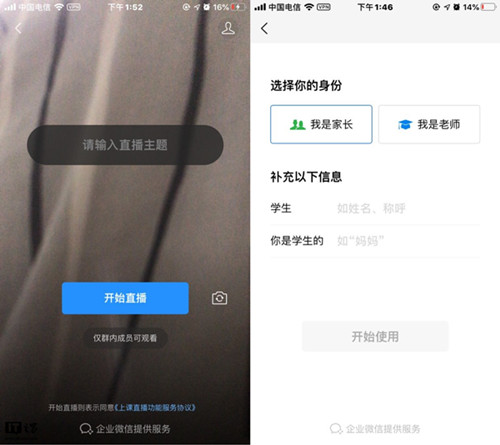 微信限时灰度测试群的上课直播功能,是由企业微信提供服务,进行直播的时候,需要输入直播主题,比如讲哪些课程,还需要同意《上课直播功能服务协议》,并且开通即表示同意,该直播不能分享出去,仅限群内成员观看。
