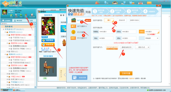 三、最后,如果试过了上述的方法后,问题依旧存在的话,大家还可以点击茶苑账号下的【道具】选项,进入到道具快买窗口后,找到界面左侧的【快速充值】按钮,点击它,然后大家就进入到充值界面了,根据自己的实际需求来选择是进行账户充值还是积分充值,接着选择充值的类型、充值的游戏、充值的金额以及充值的方式,最后进行付款即可。