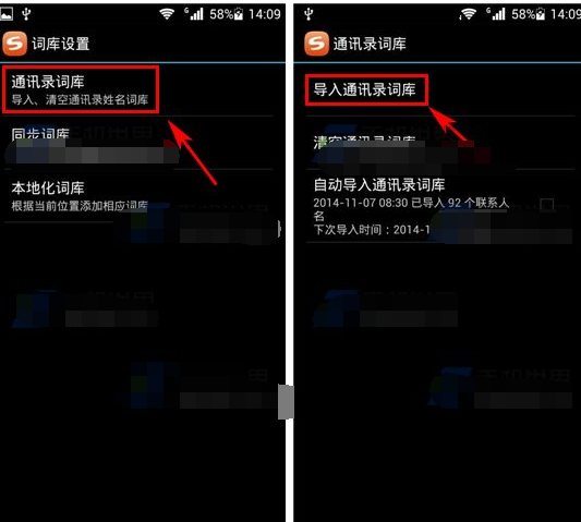 2)选择【通讯录词库】,点击【导入通讯录词库】即可。(如下图)