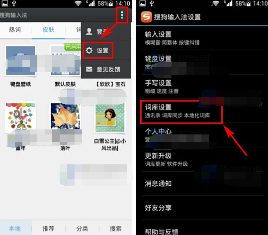 1)打开搜狗输入法,点击右上角的【...】,选择【设置】,然后点击【词库设置】。(如下图)