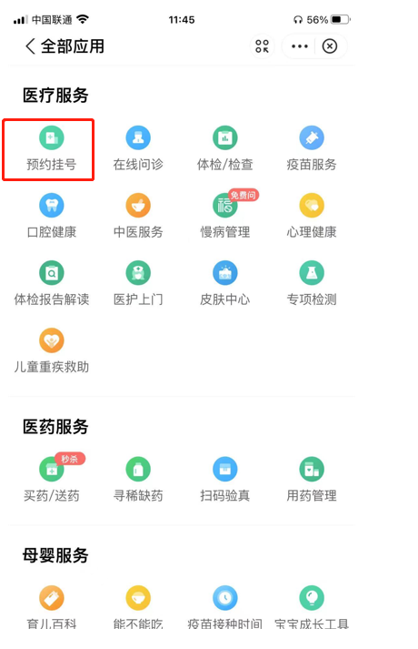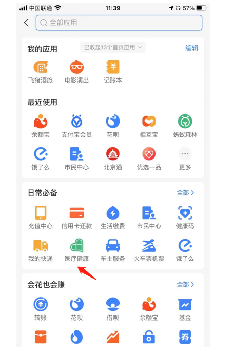 3.?进入到医疗健康界面后,点击挂号记录即可。