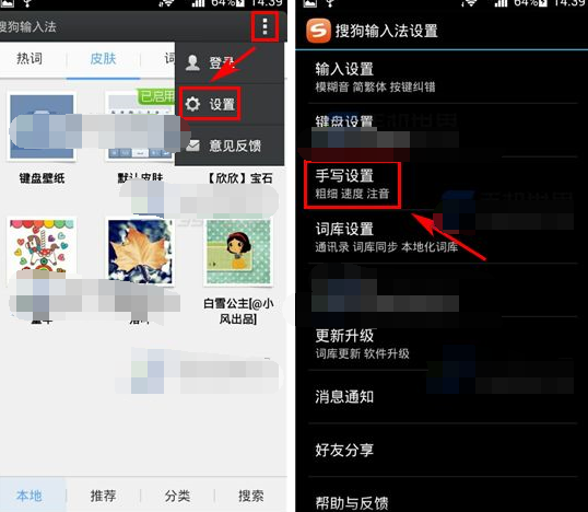 1)打开搜狗输入法,点击右上角【...】,选择【设置】,然后点击【手写设置】。(如下图)