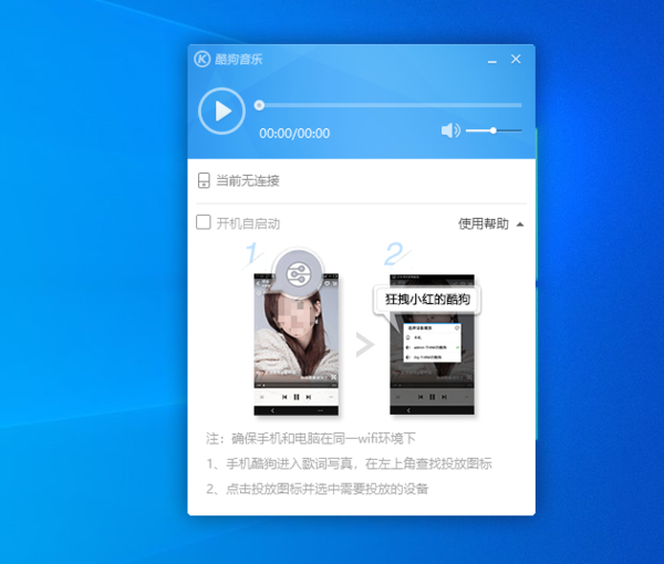 二、最后,在使用酷狗音乐DLNA功能时,需要将电脑和手机连接到同一个WiFi环境下,否则也是无法使用该功能的。