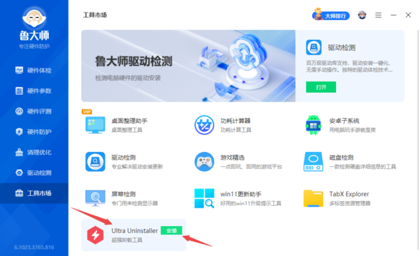 2、进入到工具市场界面后,在界面中找到【UltraUninstaller】工具,将鼠标的光标放到该工具上,然后点击其右侧的【安装】按钮。