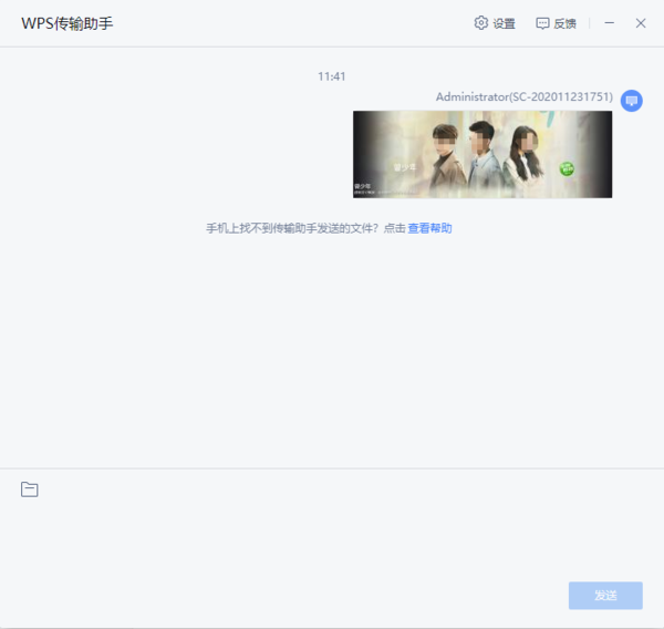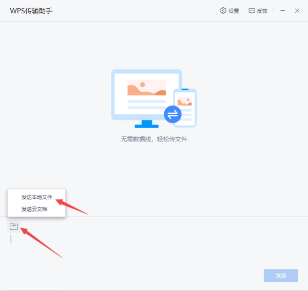 5、紧接着,软件就会弹出WPS传输助手的界面了,点击界面底部的【文件夹】按钮,然后根据需求来进行功能的选择,最后选择想要发送的文件进行发送即可。