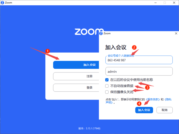 zoom视频会议不让注册加入会议的方法非常简单,只需要大家在电脑上下载zoom视频会议软件,然后点击软件界面中的【加入会议】按钮,然后在加入会议界面中,在【会议号或个人链接名称】一栏中输入会议号或个人链接名称,接着勾选相关的选择,最后点击【加入会议】按钮,即可快速地、便利地加入到视频会议当中了。