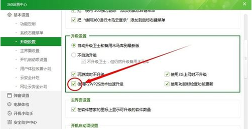 将“使用P2P/P2S技术加速升级”前的√取消即可