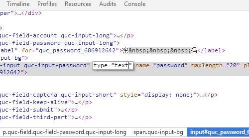 第四步 鼠标选择代码type="password",将password改成text,按下回车(见下图);