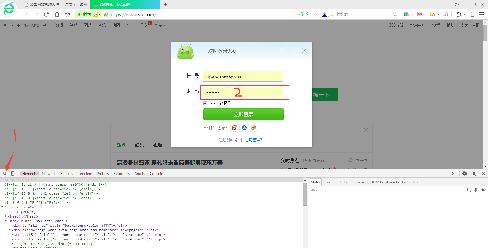 第一步 用360浏览器打开相应的网站,点击【登录】;