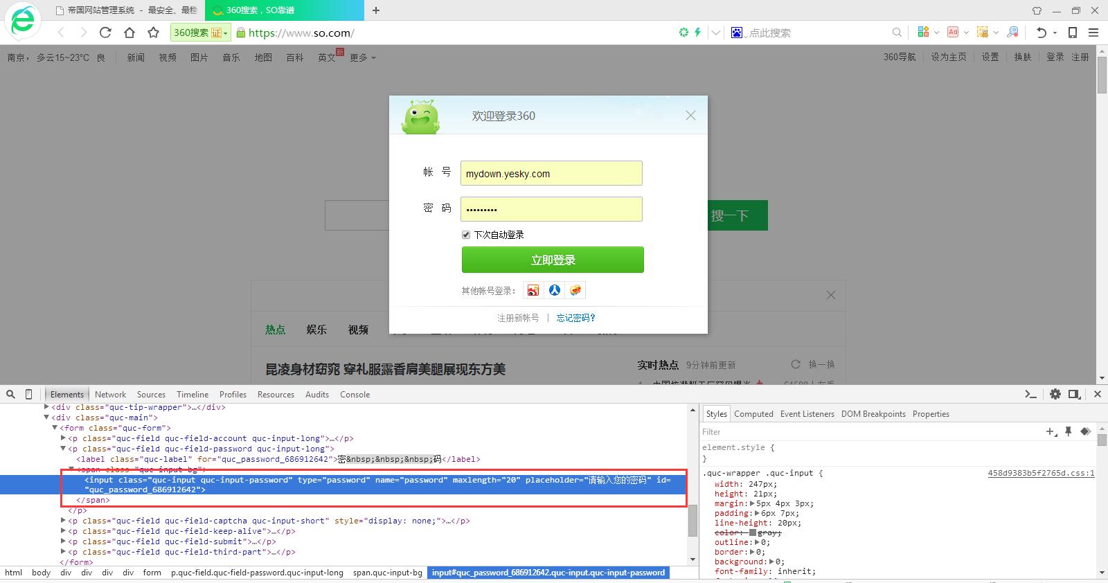 现在许多网站都需要注册账号进行登录,有的小伙伴就把所有网站设置成一样的密码,这样方便记忆。然而,多个网站使用同一个密码的风险非常高,只要其中一个网站的密码被破解或者被泄露出去的话,所有你登录的网站的个人信息也会同时泄露。所以,一般情况下建议不同的网站设置不一样的密码,可以使用360浏览器保存你的密码。