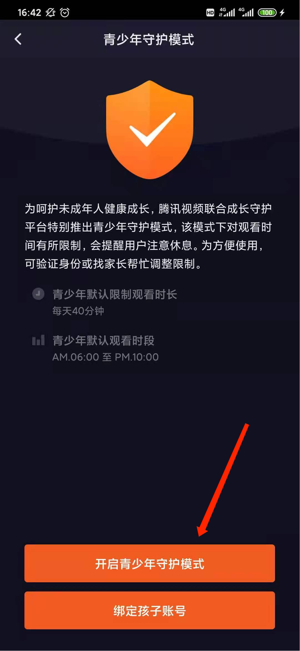 第四步,最后点击下面的【开启青少年守护模式】即可。