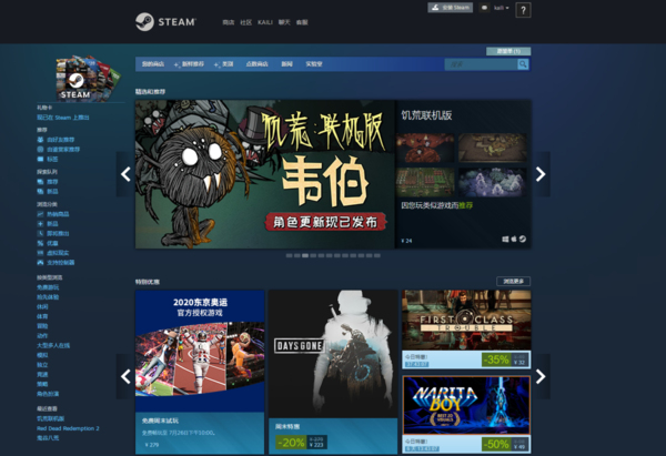 第三步,登录到刚刚注册号的帐号当中,然后在蒸汽平台的主界面中,打开【商店】,然后点击精选特惠下的【CSGO】游戏,来进入到CSGO的商店页面当中。