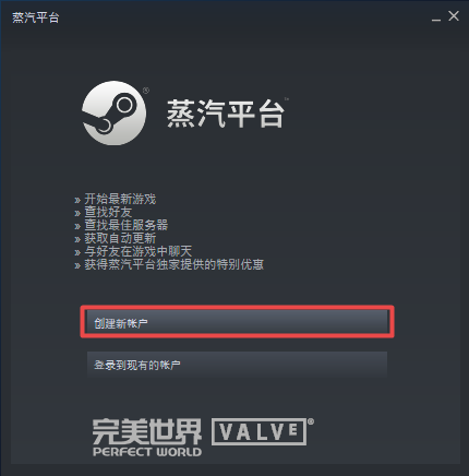 第二步,蒸汽平台下载好以后,将软件打开,然后在弹出的登录界面中,点击【创建新帐户】按钮,接着根据提示来填写信息,最后完成帐号的注册工作。