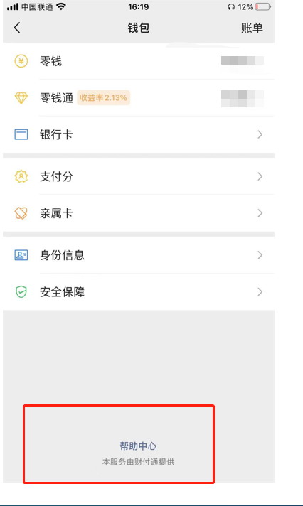 4.?进入到钱包的界面后,点击下方的帮助中心。