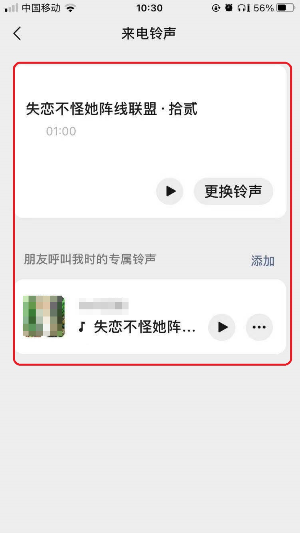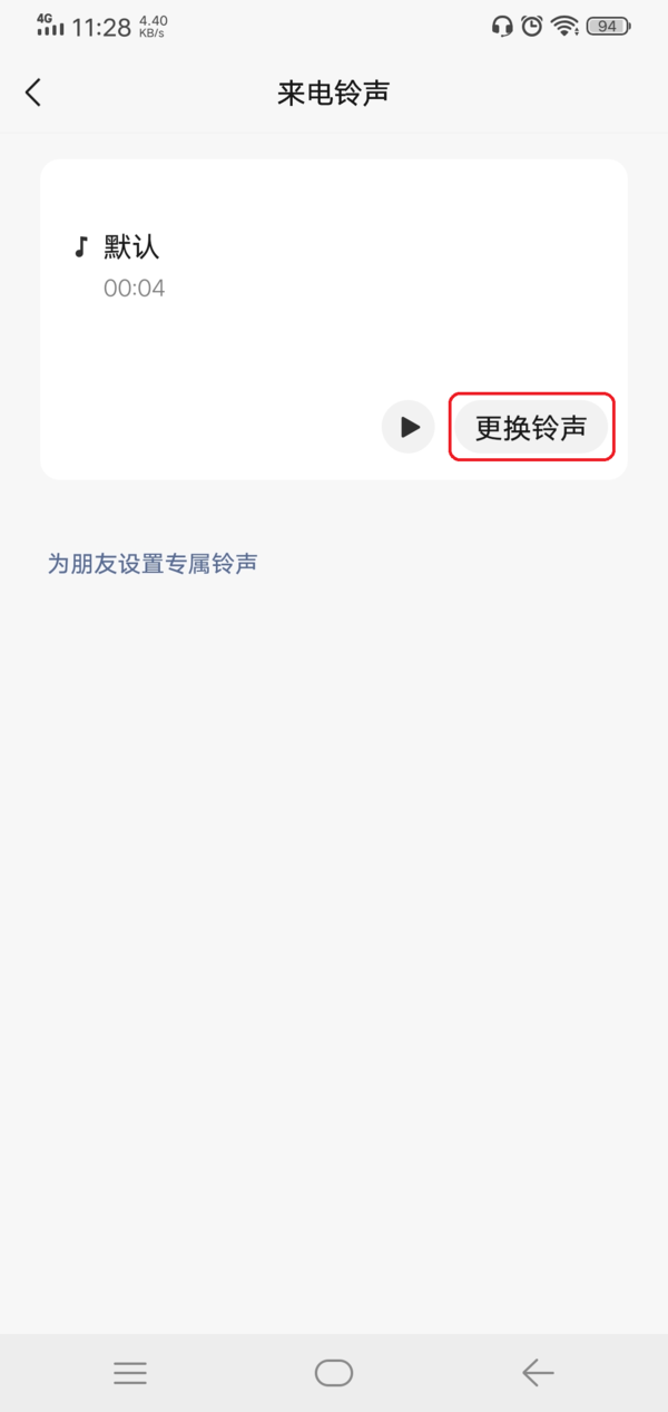 第五步,进入来电铃声更改界面当中后,点击【更换铃声】按钮。