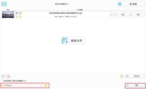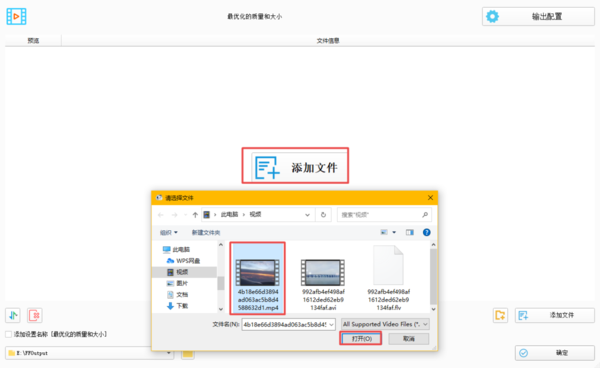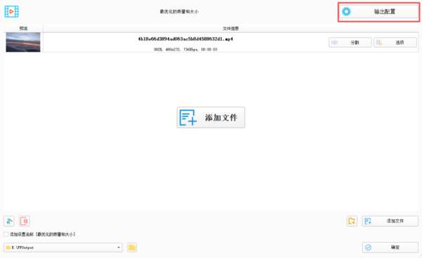 第四步,视频文件添加好以后,我们在软件界面的右上角,找到【输出配置】按钮,并点击它。